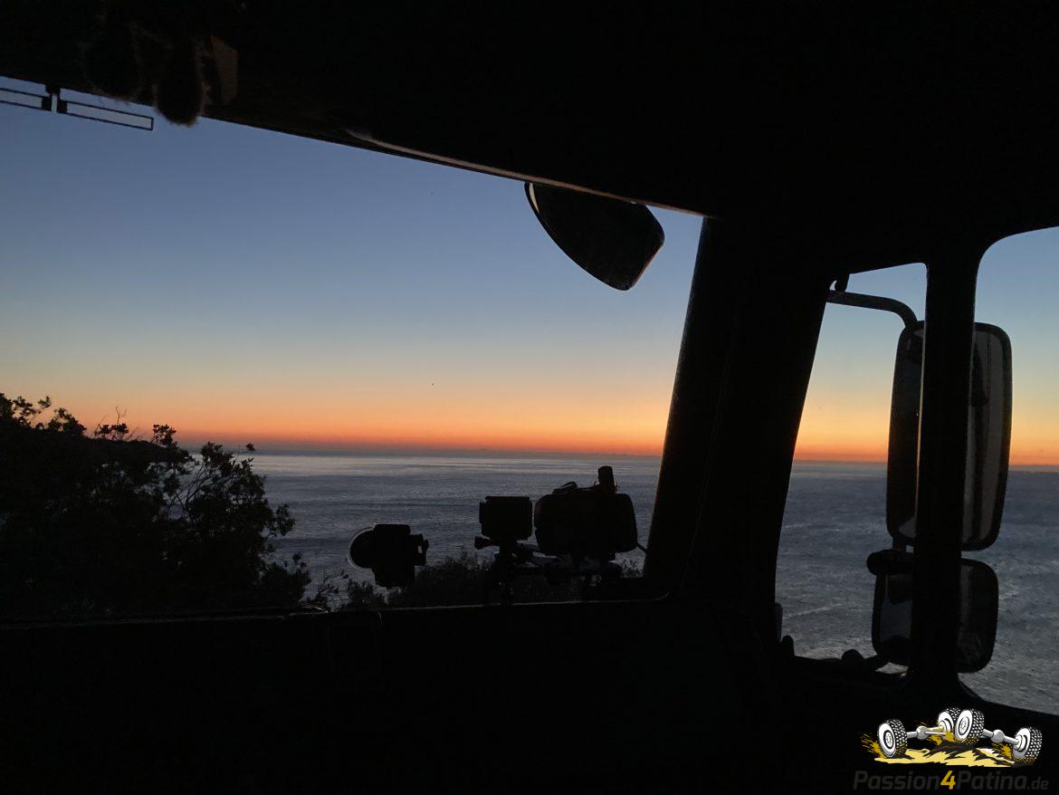 Beim Einbau unseres Haushaltskühlschrankes dachten wir schon, daß wir ihn bloß nicht neben dem Bett positionieren sollten, aber weit gefehlt: Er meldet sich kaum über den Tag und wenn, dann startet er nur mal leise, und dies auch nur kurz, durch. Und trotzdem kühlt er prima. Selbst die Kühlbox, die eine neue „Heimat“ im Stauraum unter dem Bett gefunden hat, hören wir nachts kaum. Sie wiegt uns eher mit ihrem ganz leise brummelnden Geräusch in den Schlaf. Wenn da nicht ab und zu so ein „boom, boom“ wäre. Wir wissen nicht genau, ob dies sich entspannende Federn (des Basisfahrzeuges) sind, oder die Reserveräder, deren Karkasse sich ausdehnt oder zusammen zieht, wenn wir abends halt gemacht haben. Aber fast immer, ein paar Stunden nachdem wir unser Nachtlager aufgeschlagen haben, hören wir diese Geräusche im Heckbereich. Einmal sogar so laut, daß auch das Fahrzeug gewackelt hat und wir uns gefragt haben: Ist jemand außen am Fahrzeug?
