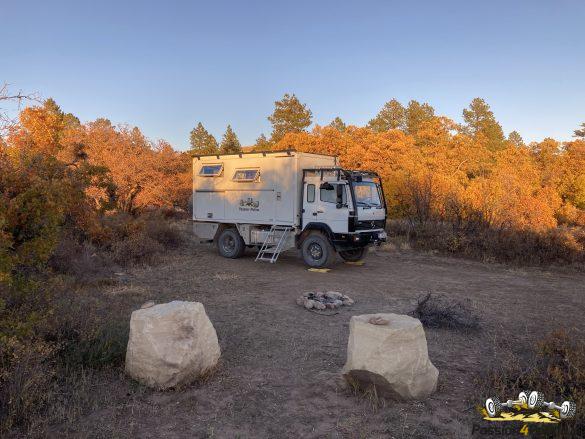 Wildes Campieren hört sich jetzt echt wild an! Und eigentlich heißt es nicht „Wild Camping“, sondern „Boondocking“. Gemeint ist das „kostenlose Freistehen“ beim Reisen. Keine Ahnung, warum wir dies nicht früher schon während unserer Urlaube gemacht hatten, aber um das Resümee vorweg zu nehmen: Wir haben vorwiegend positive Erfahrungen gemacht, egal, ob in Europa oder hier auf dem nordamerikanischen Kontinent. Zum Grund warum „vorwiegend“ und nicht „durchweg positiv“ kommen wir gleich. Aber das Wichtigste vorweg: Für uns gehören „gute Freistehplätze“ mit zum Reisen dazu, nicht nur interessante Strecken dazwischen. Da wir längst nicht mehr 10 Stunden oder gar mehr pro Tag fahren, sondern uns im Normalfall an den Stellplätzen die meiste Zeit aufhalten, sind wir immer dankbar und froh, wenn wir einen tollen Platz entdecken durften. Wir haben sogar mal ein Lob dafür bekommen, daß wir wohl ein Händchen dafür haben. Da waren wir stolz wie Oskar! 😉 Natürlich fotographiert man Plätze möglichst schön – wer macht schon gerne unschöne Aufnahmen? -, aber wir retuschieren Fotos nicht. Was wir dennoch machen, ist, den Aufnahmefokus eher auf Patsha und die nähere Umgebung zu legen, und nicht zwingend alle anderen „Mit-Freisteher“ auf dem Bild ablichten. Das kann insofern schon den Eindruck erwecken, daß wir fast immer alleine stehen, was natürlich nicht der Fall ist. Dennoch zeigen wir, wenn es tatsächlich viele um uns herum sind, aber wenn es nur ein paar sind, möchten diese vielleicht nicht mit abgelichtet werden; daher eher der Fokus auf Patsha und die tolle Landschaft.