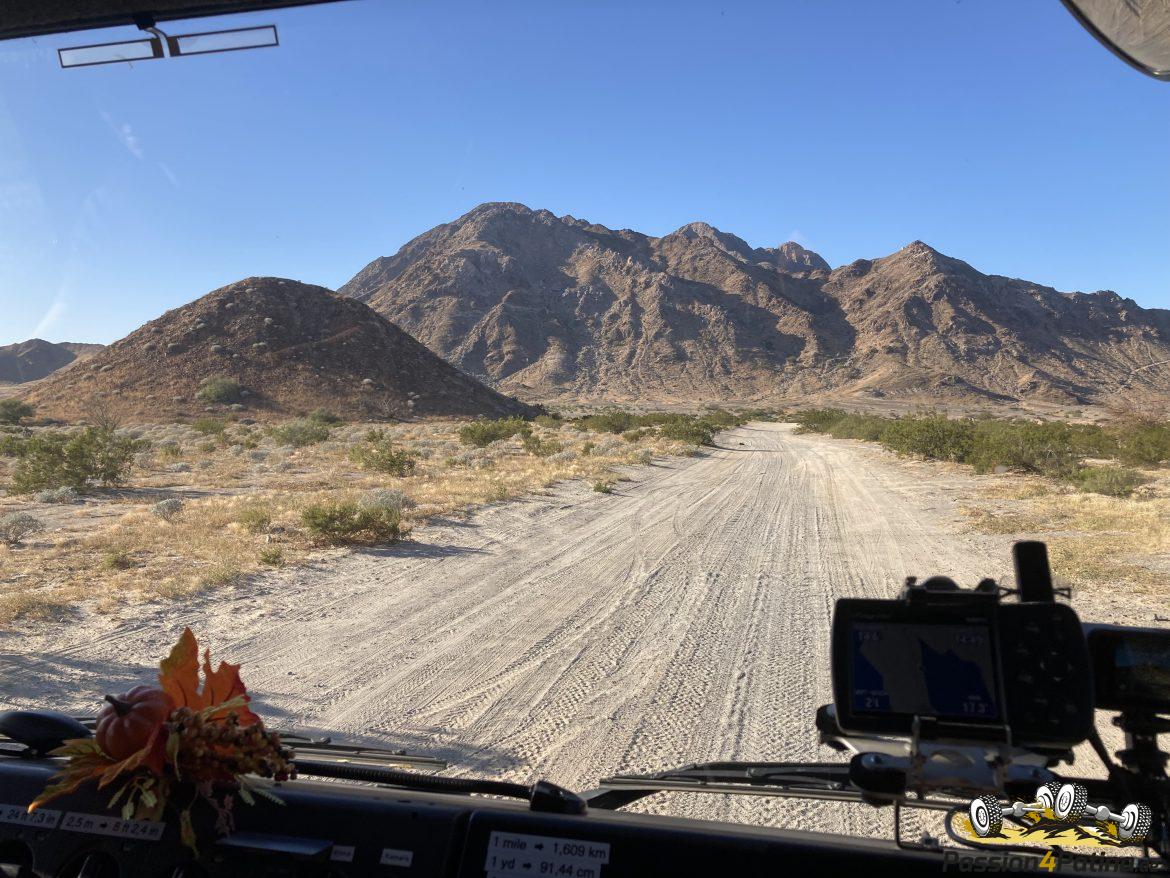 In Bahia de Los Angeles hatten wir dann die „glorreiche“ Idee, entlang einer Hinterlandpiste `gen Süden zu fahren, um dann über El Arco im Bogen wieder auf die MEX1 zu stoßen. Ach ja, MEX1! Wir schließen uns denjenigen an, die sagen: Super eng, achten auf den Außenspiegel auf Fahrerseite bei LKW Gegenverkehr, hohe Konzentration! Glücklicherweise verringern auch die LKWs auf der Gegenseite etwas ihre Geschwindigkeit, aber es ist sehr anstrengend, auf dieser Hauptverkehrsader der Baja zu fahren. Und nicht nur, daß die Straße schmal ist: Der rechte Fahrbahnrand ist abgebrochen, teilweise unterspült, so daß die Fahrspur noch enger wird; die Kante am rechten Fahrbahnrand steht teilweise wie eine Abbruchkante 50 Zentimeter hoch heraus, und auch der Fahrbahnbelag hat viele Schlaglöcher und sogar Steine liegen hierauf. Hut ab vor denjenigen, die mehrere hundert Kilometer pro Tag auf dieser Straße schaffen! In den Ortschaften – abseits der MEX 1 – darf man sich dann zusätzlich auf tiefhängende Oberleitungen und nicht erkennbare Topes einstellen. So ist auch der Beifahrer gefragt und muß aufpassen. Aber wir hatten es ja bis nach Bahia de Los Angeles geschafft und wollten auf die Piste, auf der kurz zuvor noch das Rennen Baja 1000 stattgefunden hatte. Fazit: Eine ganz blöde Idee!