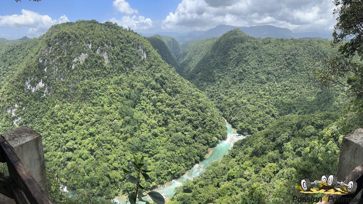 Am zweiten Tag sind wir von dort nach Frontera Corozal gefahren. Kaum mehr Topes, man kommt gut voran, und wieder landschaftlich wunderschön! Wir hatten kaum (Gegen-)Verkehr und zeitweise wurde die zuvor eher geradlinige Strecke sogar schlängelig. Zugewachsen war sie nach wie vor, so daß mittiges Fahren für unsere Höhe wieder angebracht war. Am Ortseingang bezahlt man die 80 MXN (ca. 4 €) „Dorfgebühr“ p.P. und zum Touristenbüro ist es auch nicht mehr weit. Aber immer schön aufpassen auf die tiefhängenden Oberleitungen!!! Wir parken direkt neben dem Tourist Office (auch für die Nacht) und schwups haben wir schon das Boot gebucht. Mit 1200 MXN (ca. 60 €) ist die Bootstour zwar nicht billig, aber wir möchten die Maya Stätte Yaxchilan besuchen. Das Eintrittsticket muß man noch VOR der Bootsfahrt in einem anderen Büro besorgen (150 MXN p.P.). Per Boot werden wir komfortabel in ca. 35 min. über den braun gefärbten Fluß bis zur Stätte gefahren. Diese ist zwar von ihren Ruinen nicht wirklich ein Highlight – da ist z.B. Uxmal viel imposanter -, aber sie liegt eingewachsen mitten im Dschungel und wir hätten tatsächlich festes Schuhwerk anziehen sollen. Die Pfade zwischen den einzelnen Stätten sind nicht immer gut ausgeschildert und sie gehen in tlw. schlechtem Zustand bergauf und bergab. Hätten wir dies gewußt, wären Wanderstöcke wahrscheinlich hilfreich gewesen. Die Anlage beeindruckt uns, da sie „verwachsen“ im Dschungel liegt und die Anfahrt ist ein tolles Erlebnis, da sie nur mit dem Boot zu erreichen ist. Nach knapp 4 Std. sind wir wieder bei Patsha und: Das Restaurant neben uns ruft. 😉 Was sollen wir sagen: Lecker und günstig (gut gegessen und getrunken für 17 € (plus Trinkgeld) – zusammen!). Und leckeres Frühstück gibt es dort auch. 😊