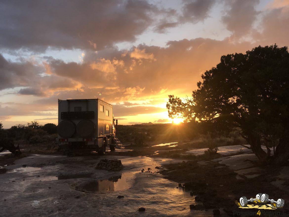 Wildes Campieren hört sich jetzt echt wild an! Und eigentlich heißt es nicht „Wild Camping“, sondern „Boondocking“. Gemeint ist das „kostenlose Freistehen“ beim Reisen. Keine Ahnung, warum wir dies nicht früher schon während unserer Urlaube gemacht hatten, aber um das Resümee vorweg zu nehmen: Wir haben vorwiegend positive Erfahrungen gemacht, egal, ob in Europa oder hier auf dem nordamerikanischen Kontinent. Zum Grund warum „vorwiegend“ und nicht „durchweg positiv“ kommen wir gleich. Aber das Wichtigste vorweg: Für uns gehören „gute Freistehplätze“ mit zum Reisen dazu, nicht nur interessante Strecken dazwischen. Da wir längst nicht mehr 10 Stunden oder gar mehr pro Tag fahren, sondern uns im Normalfall an den Stellplätzen die meiste Zeit aufhalten, sind wir immer dankbar und froh, wenn wir einen tollen Platz entdecken durften. Wir haben sogar mal ein Lob dafür bekommen, daß wir wohl ein Händchen dafür haben. Da waren wir stolz wie Oskar! 😉 Natürlich fotographiert man Plätze möglichst schön – wer macht schon gerne unschöne Aufnahmen? -, aber wir retuschieren Fotos nicht. Was wir dennoch machen, ist, den Aufnahmefokus eher auf Patsha und die nähere Umgebung zu legen, und nicht zwingend alle anderen „Mit-Freisteher“ auf dem Bild ablichten. Das kann insofern schon den Eindruck erwecken, daß wir fast immer alleine stehen, was natürlich nicht der Fall ist. Dennoch zeigen wir, wenn es tatsächlich viele um uns herum sind, aber wenn es nur ein paar sind, möchten diese vielleicht nicht mit abgelichtet werden; daher eher der Fokus auf Patsha und die tolle Landschaft.