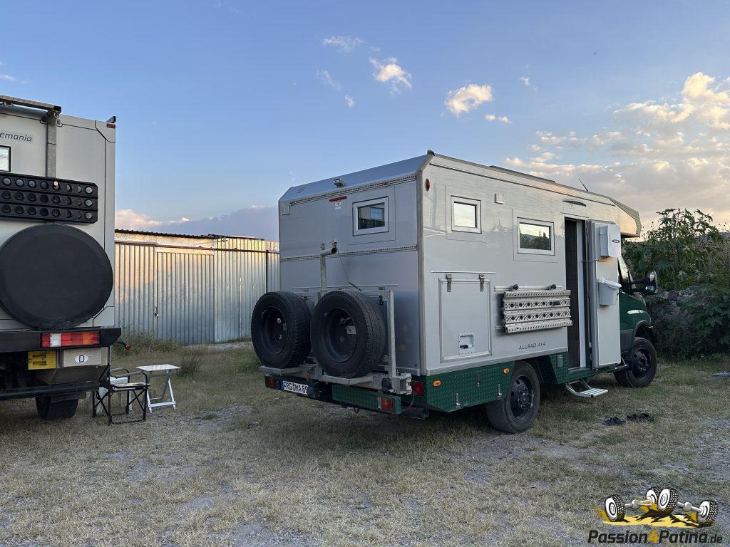 In Kalamata quetschen wir uns in die Lücke vor diesem ausgebauten Reisemobil auf Basis eines Bremachs und lernen dabei die sympathische Familie mit ihren beiden aufgeweckten Kindern kennen. Dabei merken wir: Wir hatten eine fast gleiche Route bei unserer Europa Tour und sind uns dennoch erst jetzt begegnet. Schöner Zufall!